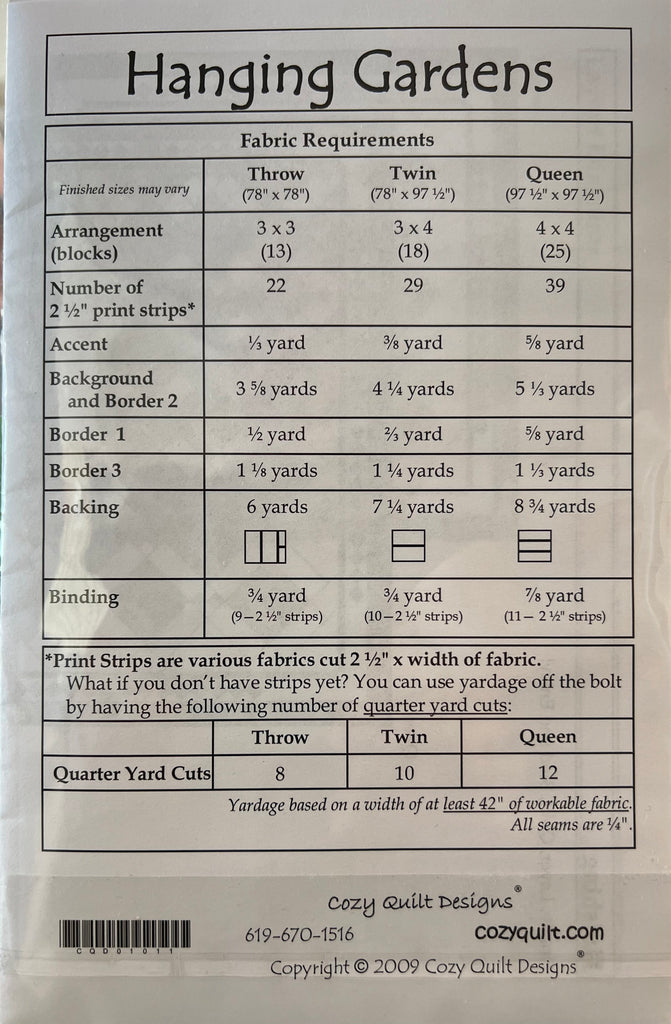 One of our favourite patterns that uses 2.5" strips - pattern provides instructions to make a throw, twin or queen sized quilt. Designed by Georgette Dell'Orco for Cozy Quilt Designs.